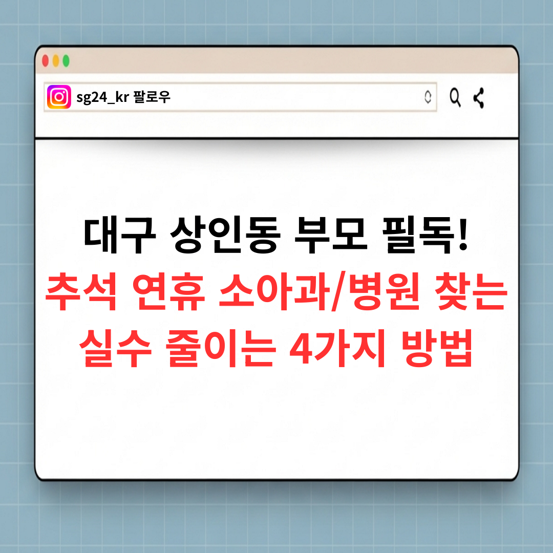 추석 연휴 아이 건강 비상 대책! 대구 달서구 상인동에서 가장 가까운 소아과/약국을 빠르고 정확하게 찾는 방법을 담았습니다. 경련, 고열 등 응급 상황별 대처 요령도 포함. 이번 명절은 걱정 없이 안심하세요!