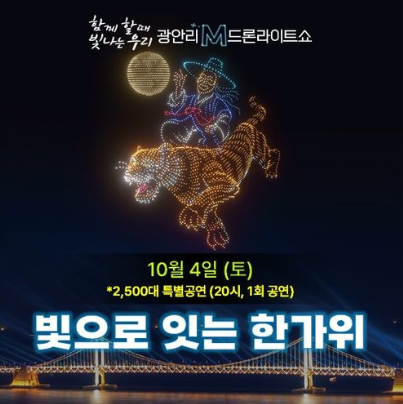 2,500대의 드론이 밤하늘을 수놓는 ‘광안리 M 드론라이트쇼 추석 특별공연’이 여러분을 기다립니다.